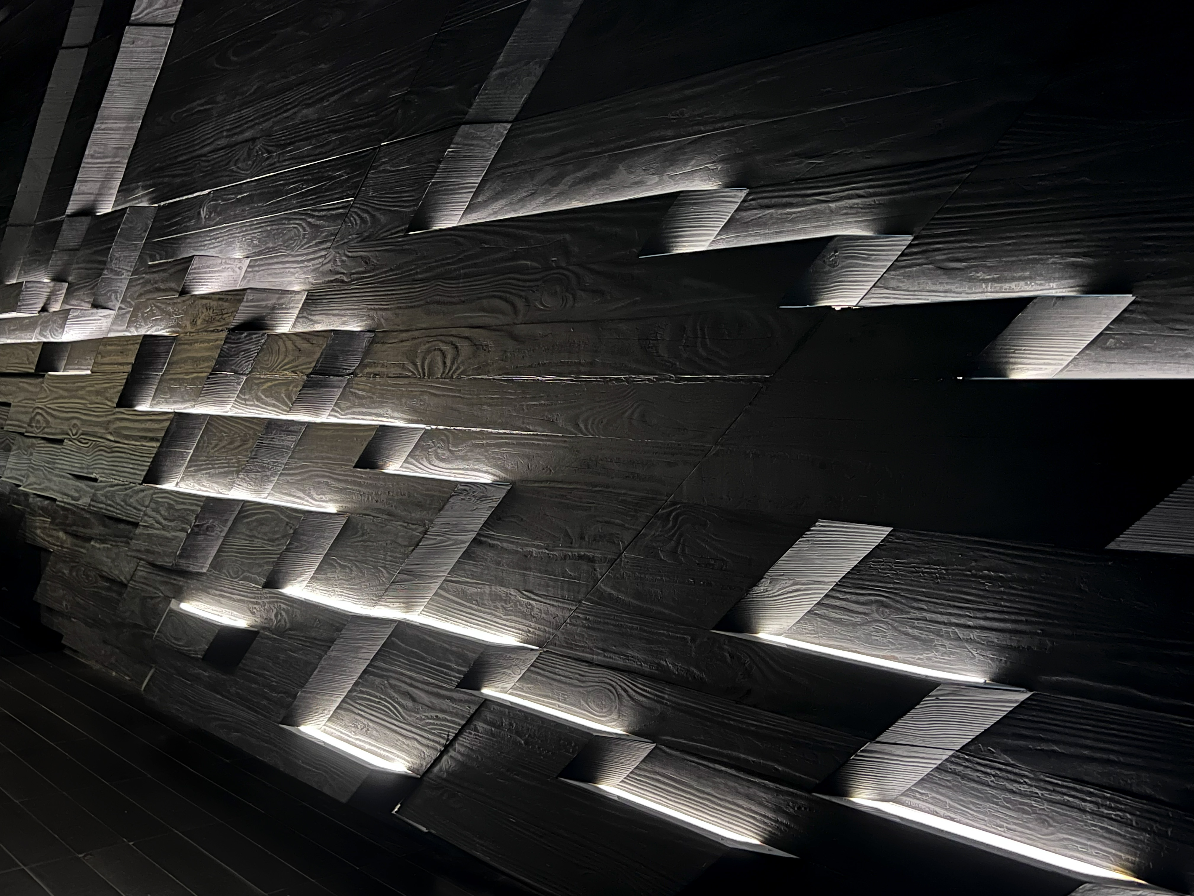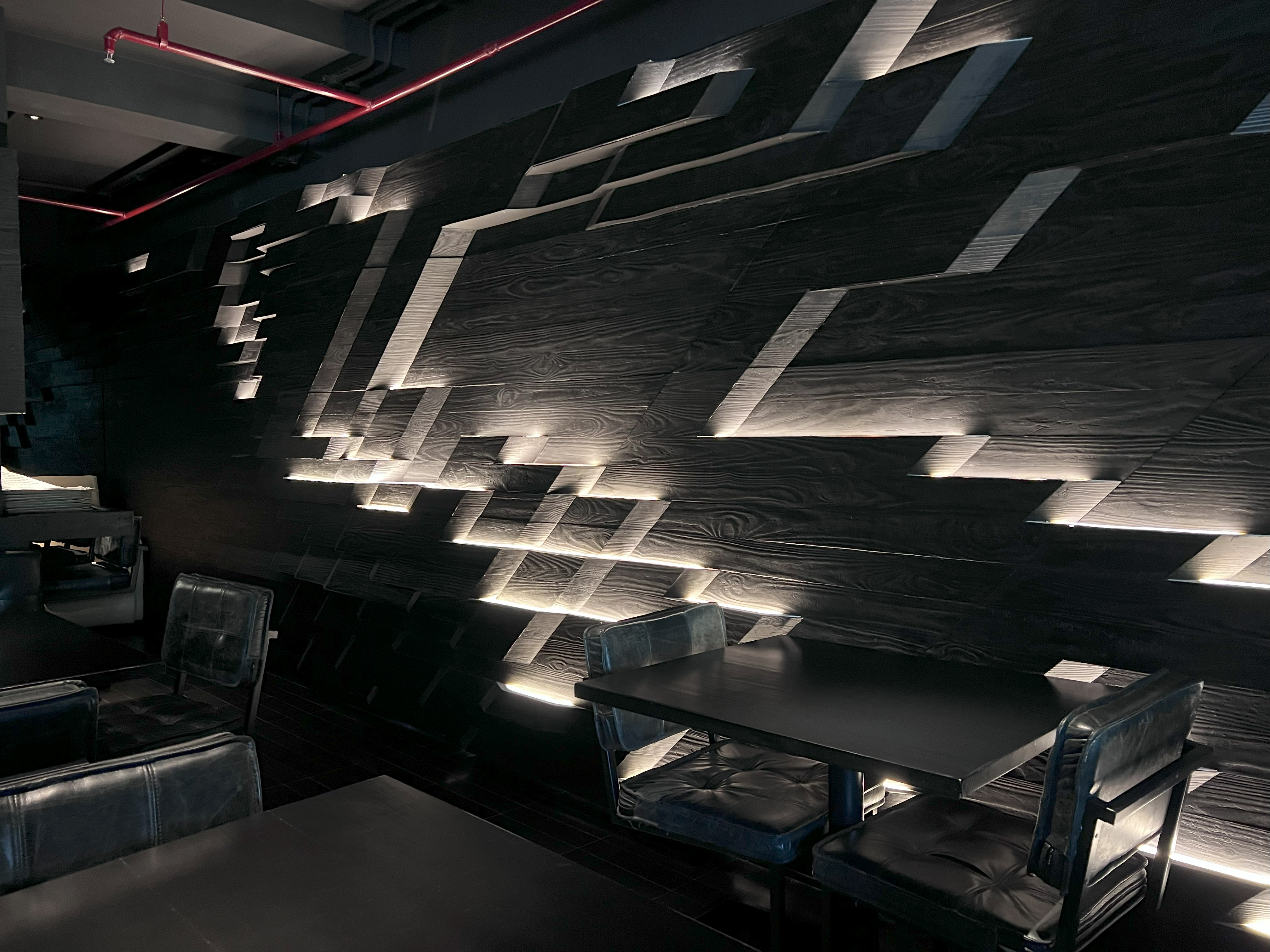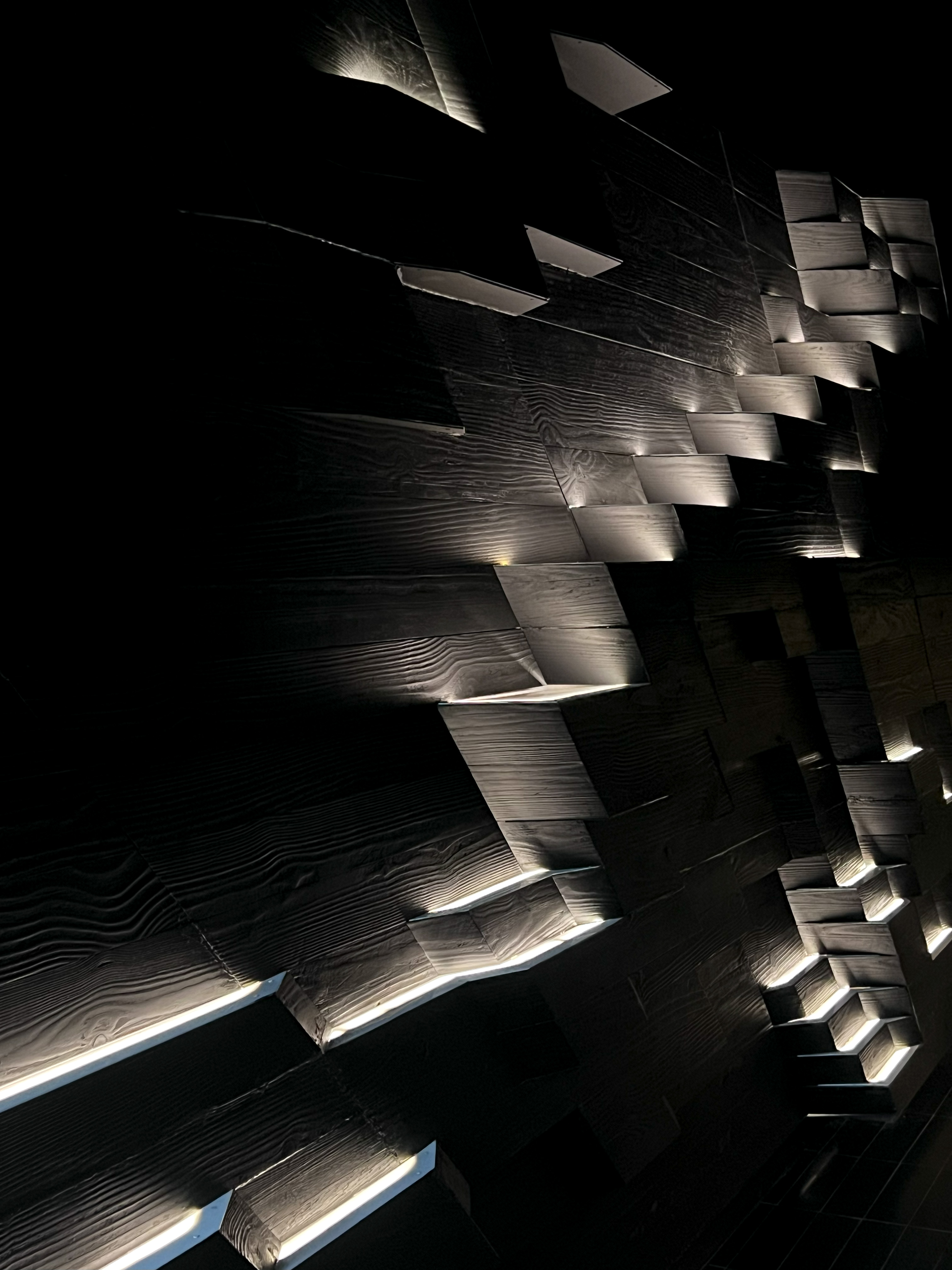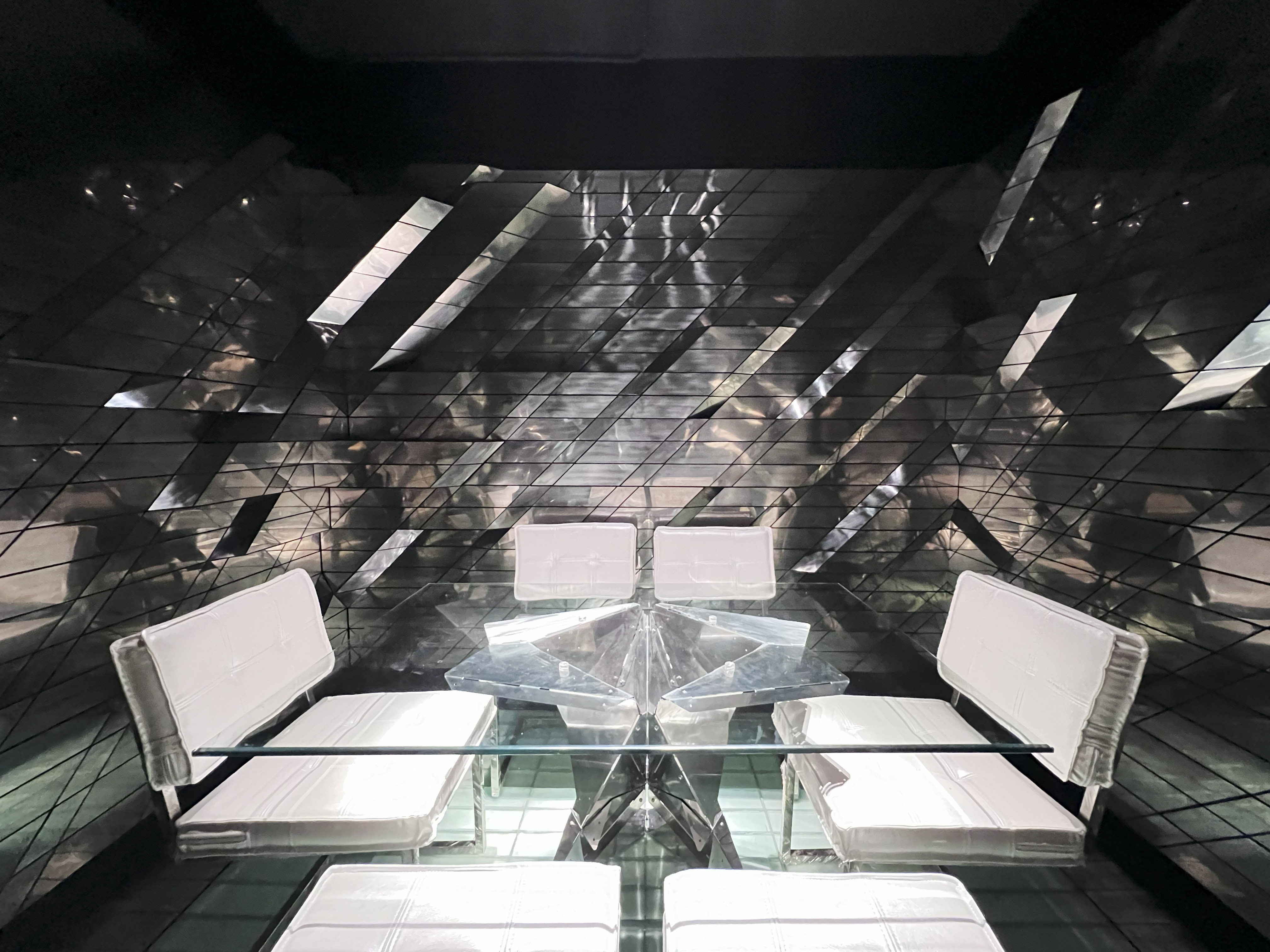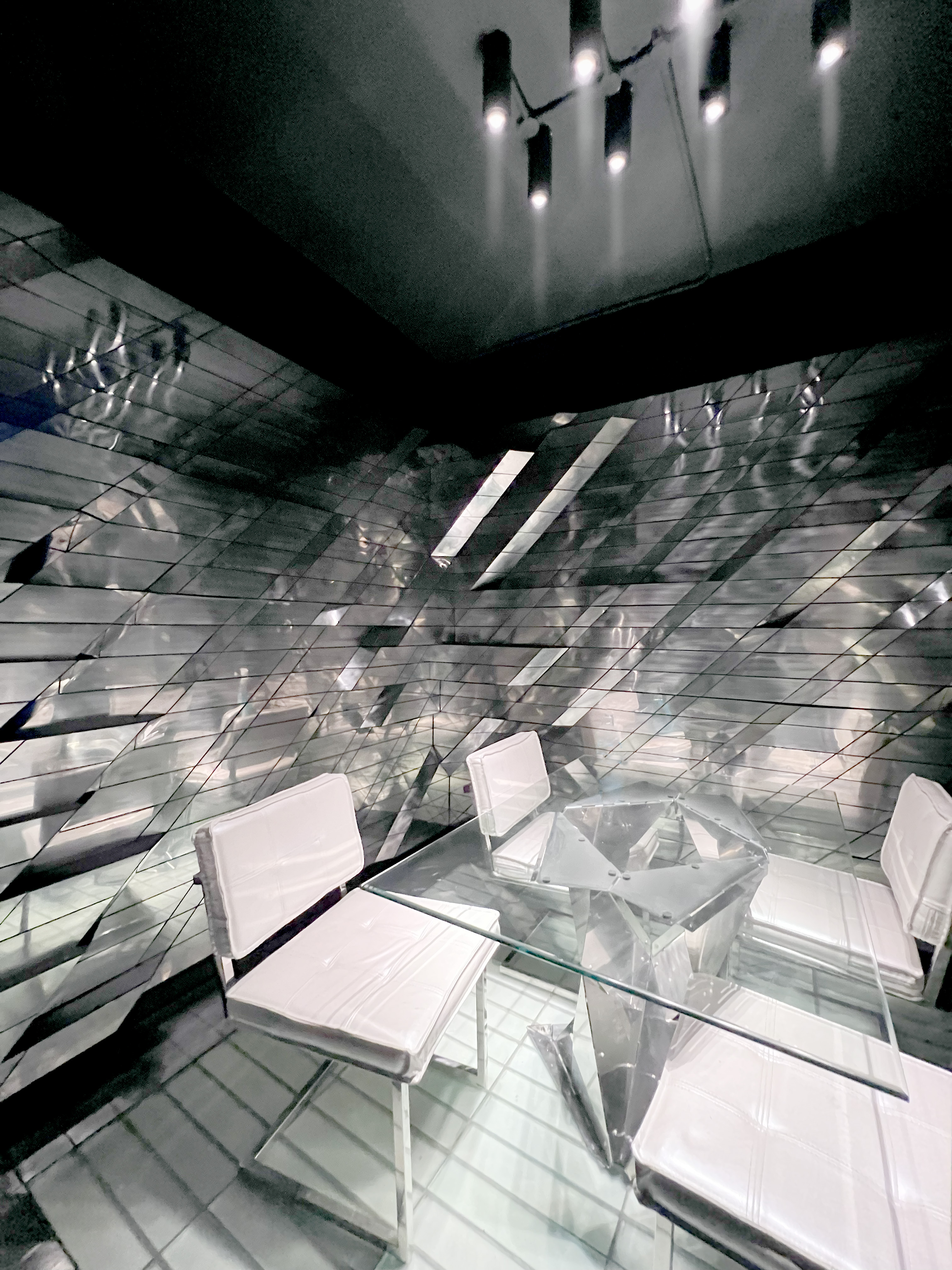 Within the cialis nuovo prezzo noir space, spotlights from the ceiling illuminate the chef’s creations. Panels of Shou Sugi Ban, or Japanese charred wood planks, cover the walls, yet step to reveal strips of ambient light that form patterns across the room. In contrast to this, the private dining room forms a glowing geode of mirrored panels that sparkle and reflect the light.