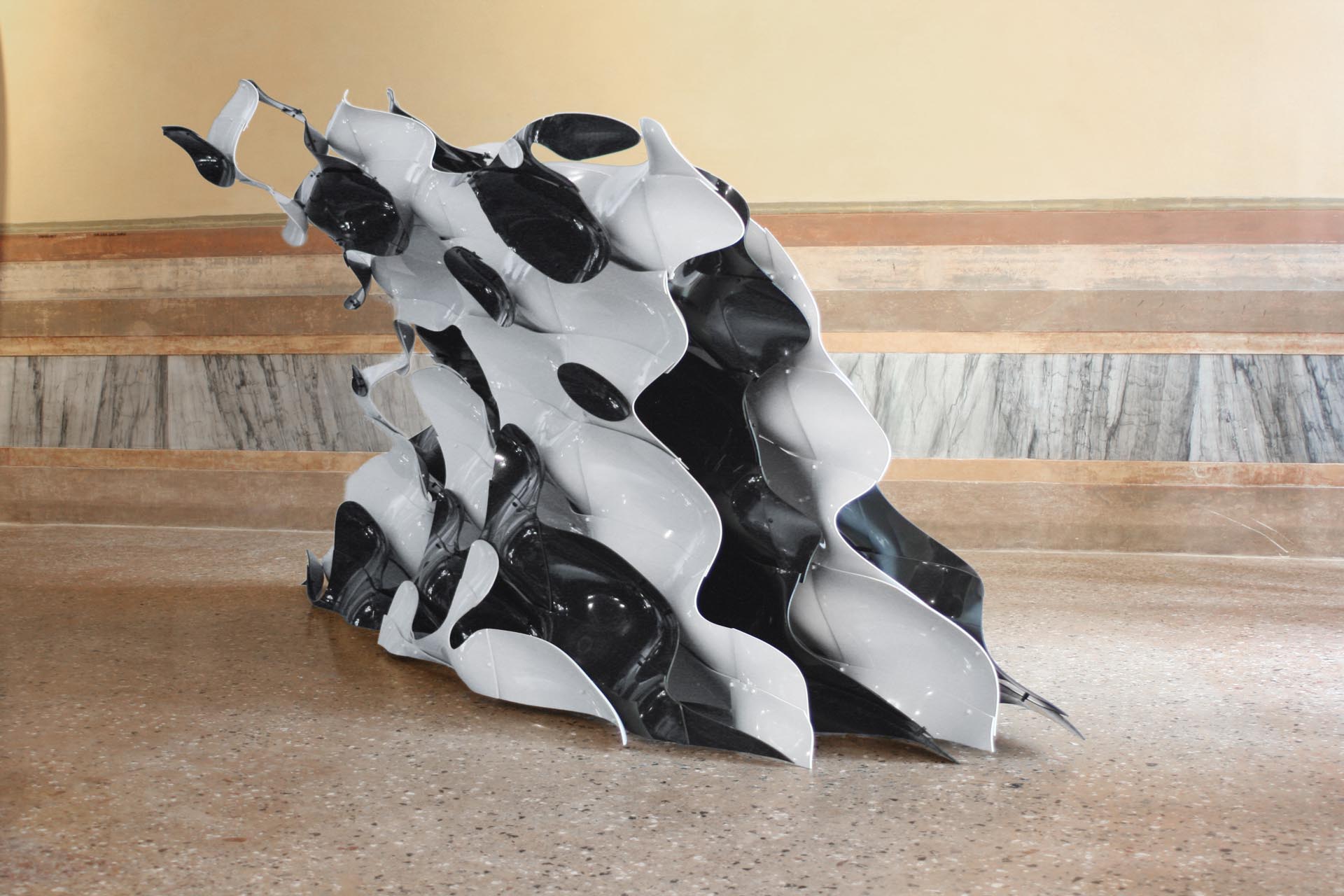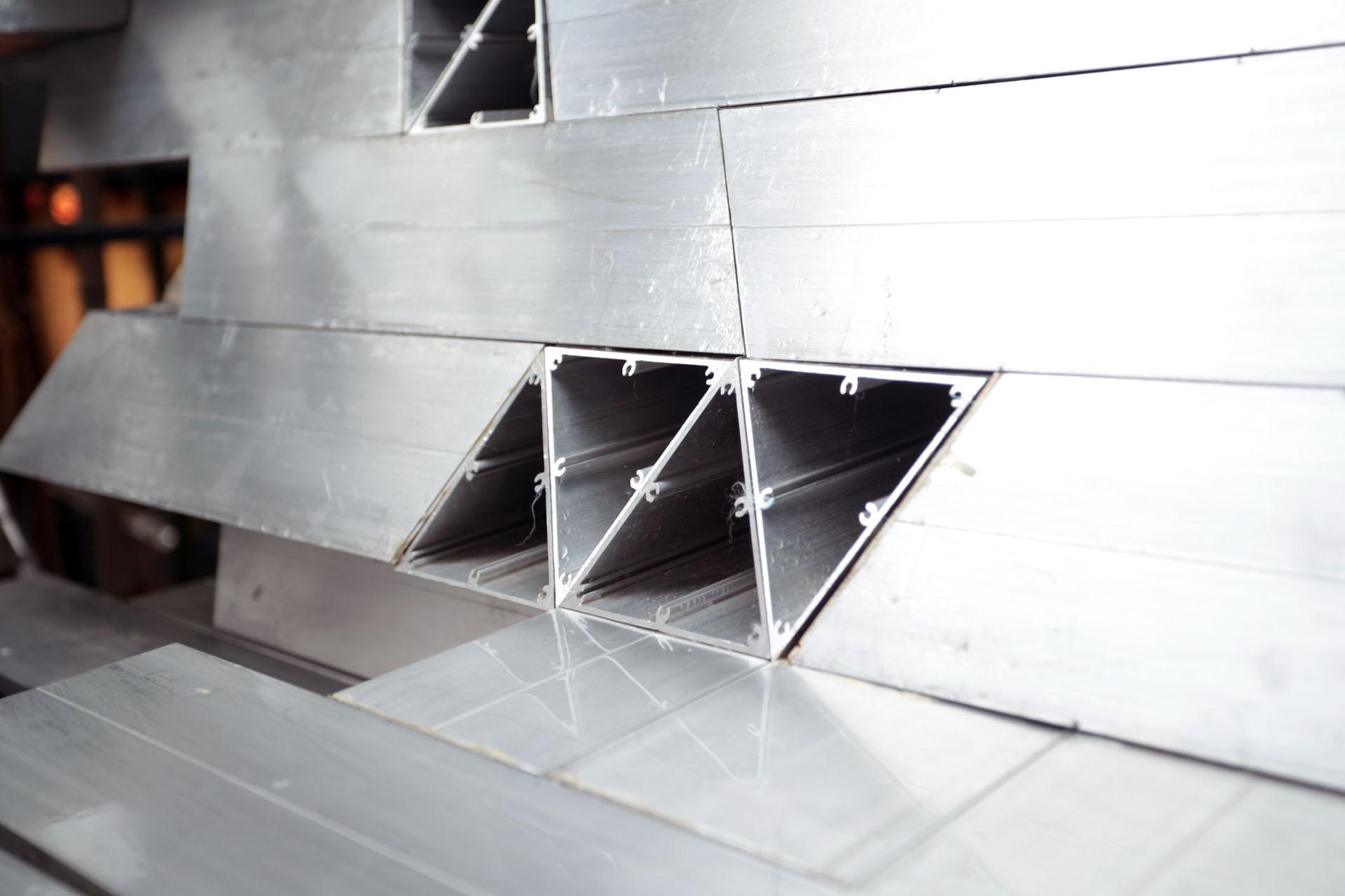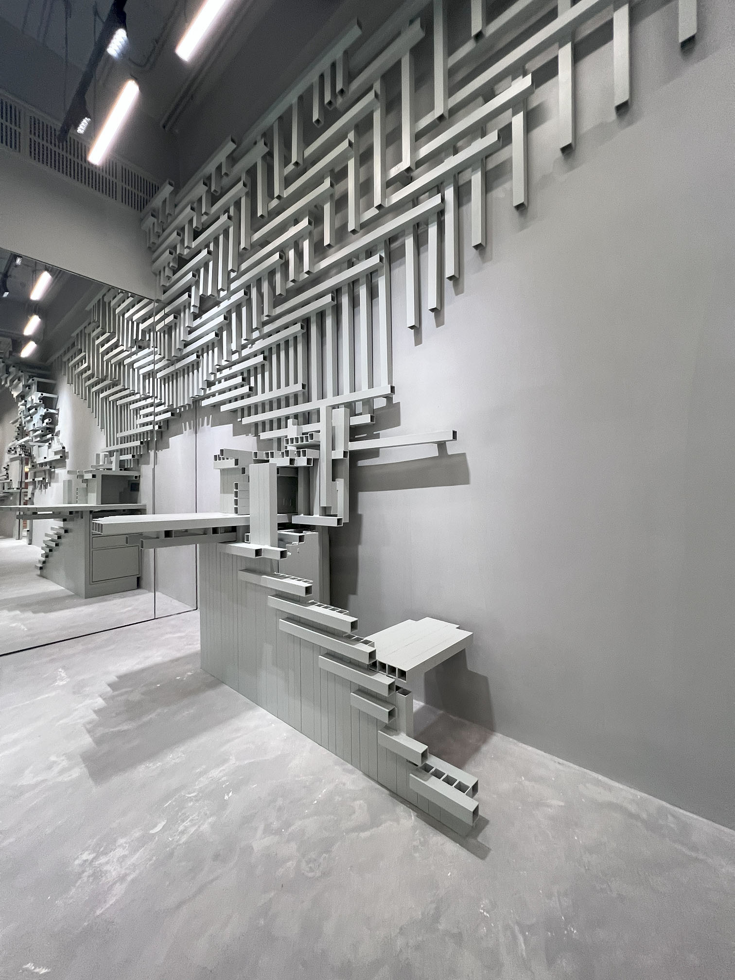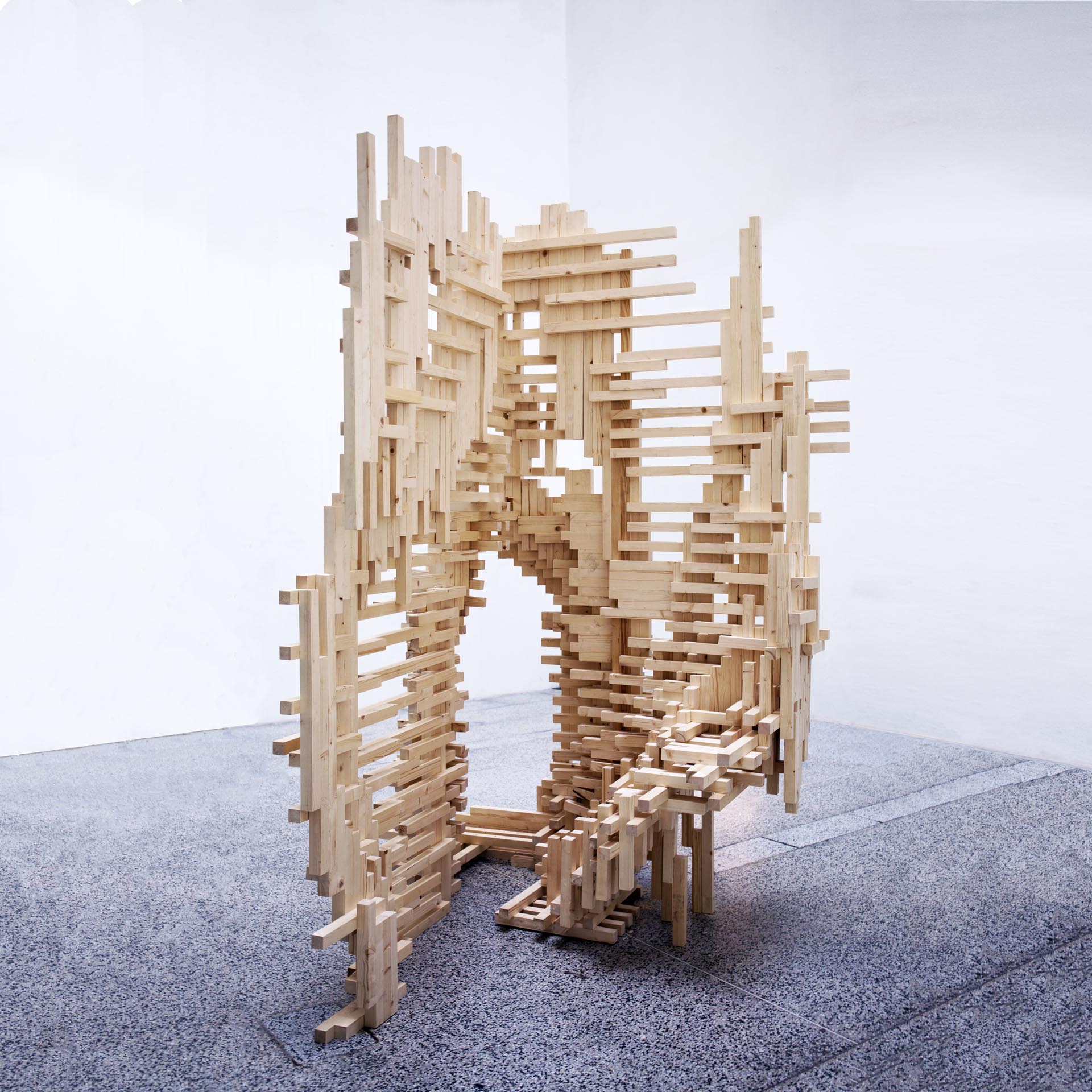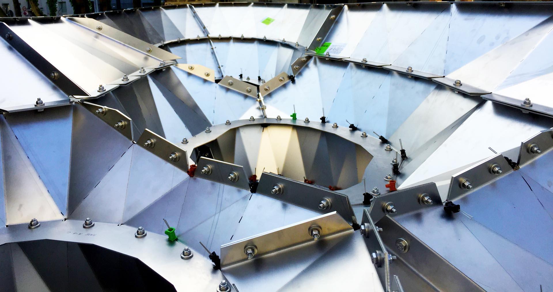 The positioning of the façade walls has been developed according to a custom written flow simulation. The algorithm describes a flow that is influenced and altered by a set of deflectors, which each act according to the magnitude of their attraction and the area of their influence.