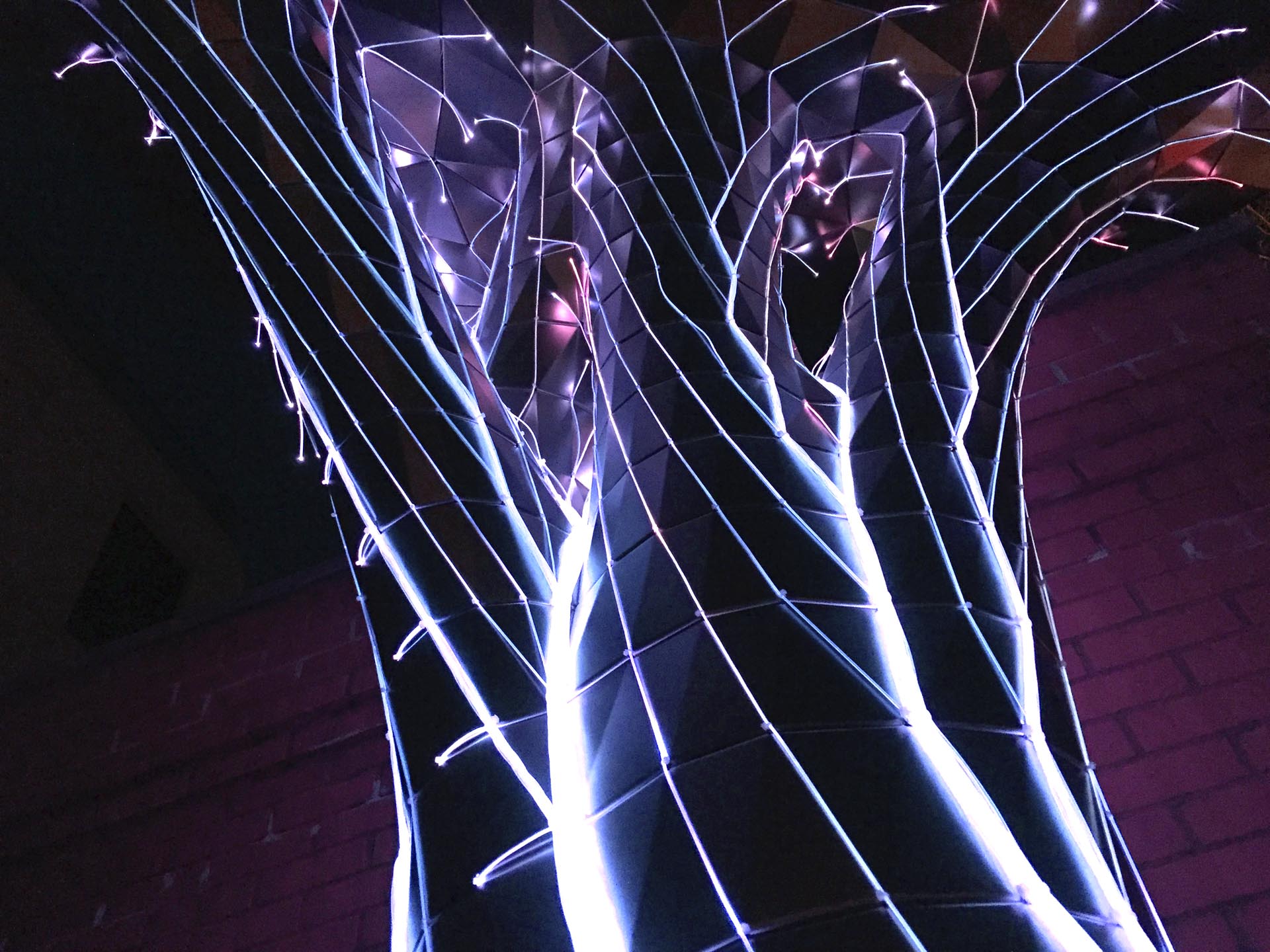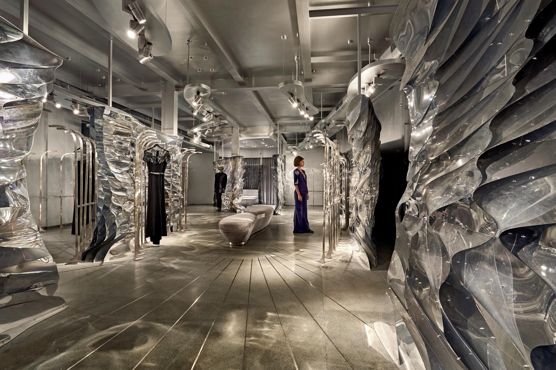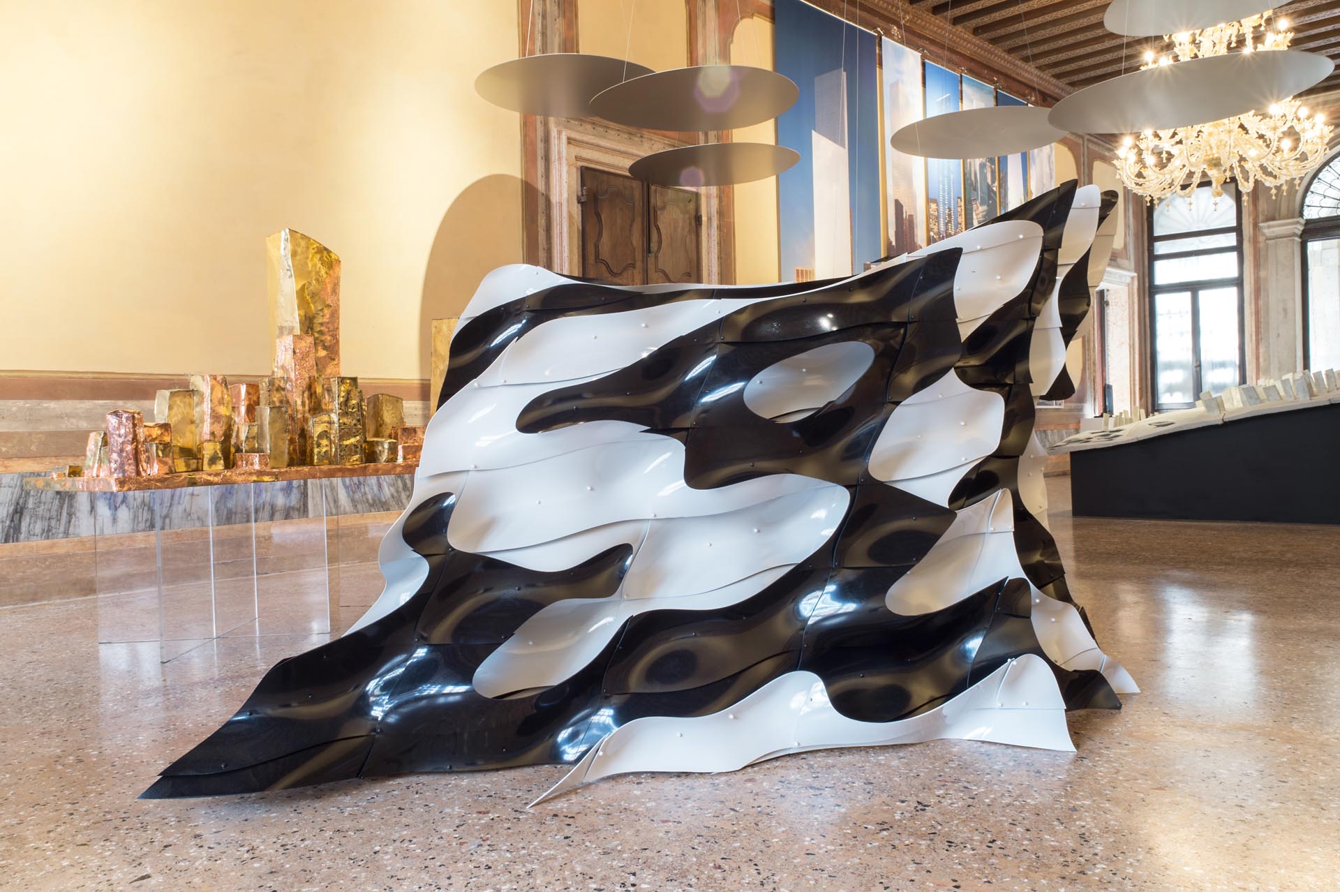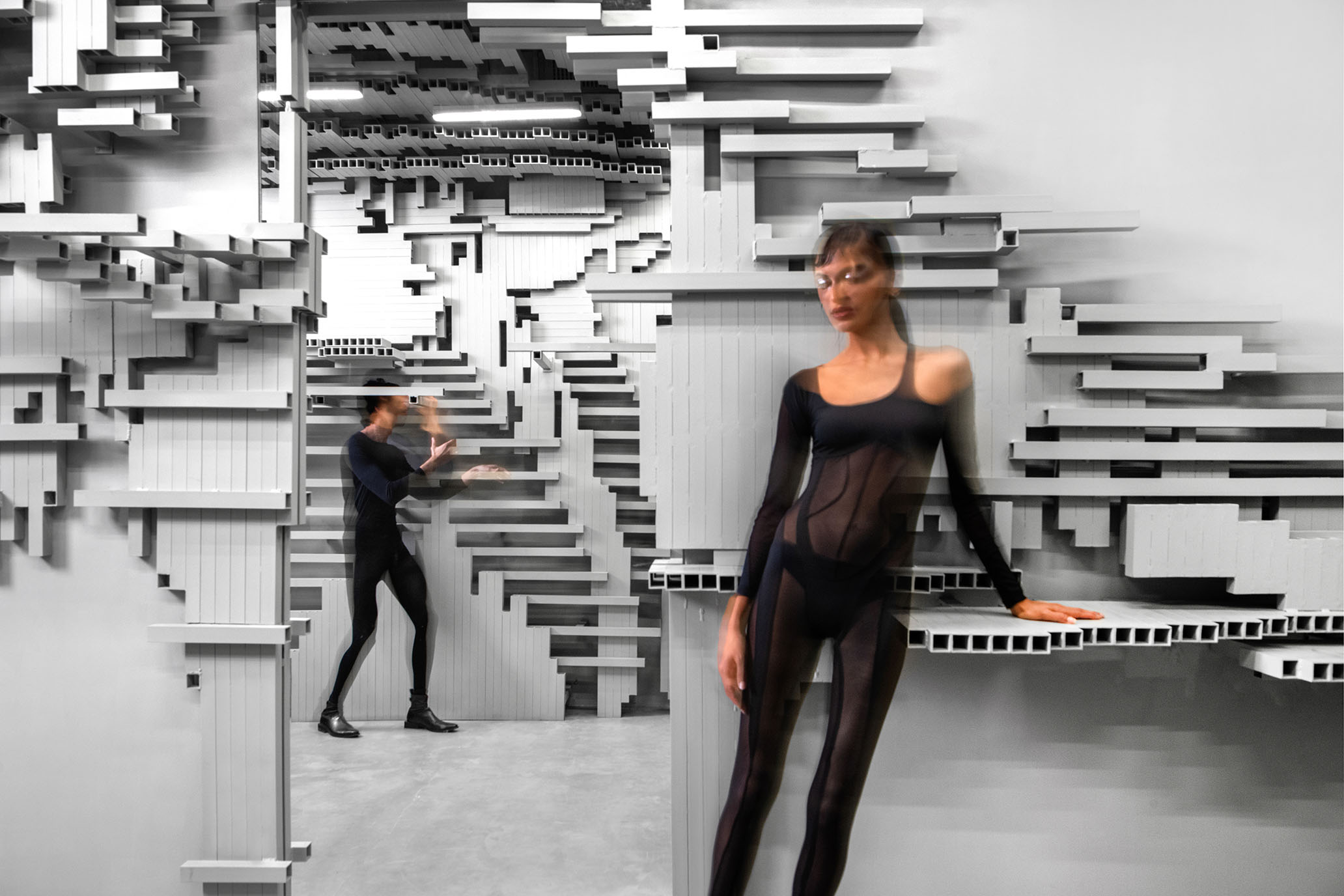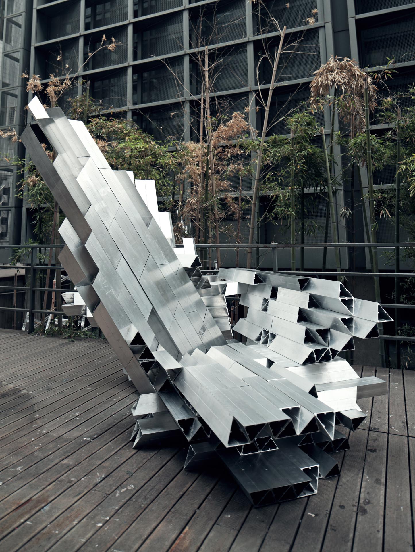 The positioning of the façade walls has been developed according to a custom written flow simulation. The algorithm describes a flow that is influenced and altered by a set of deflectors, which each act according to the magnitude of their attraction and the area of their influence.