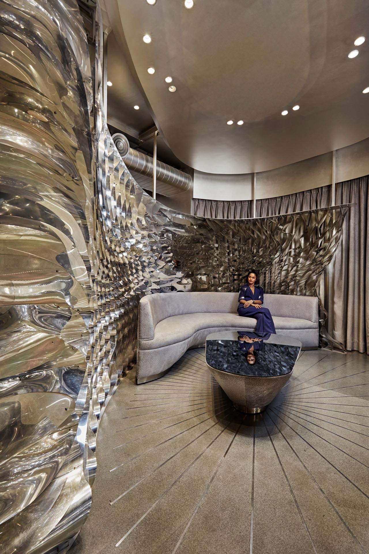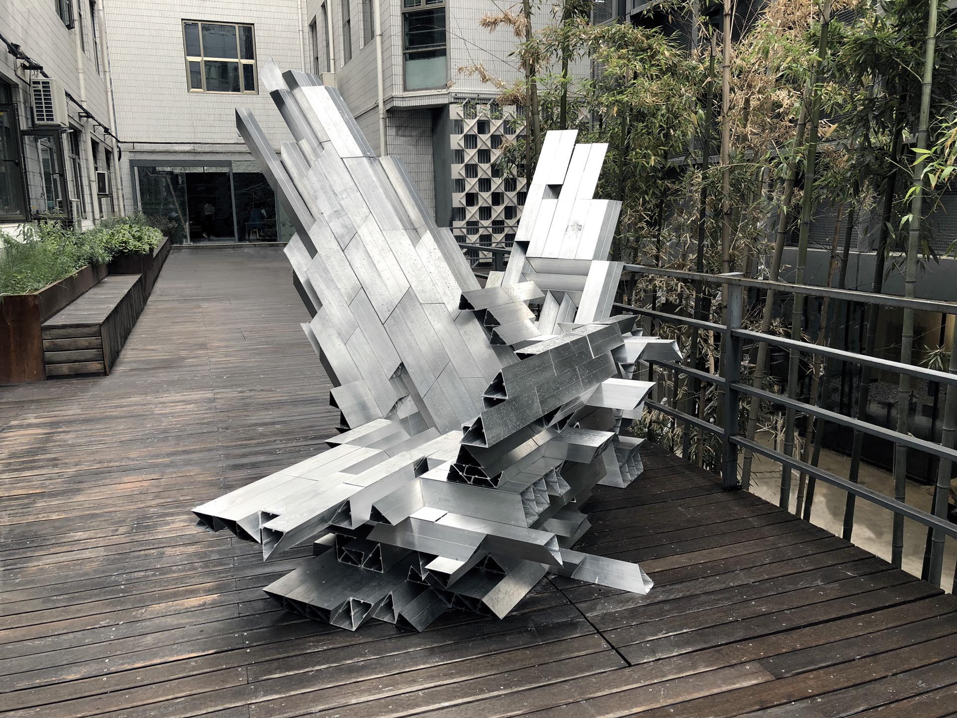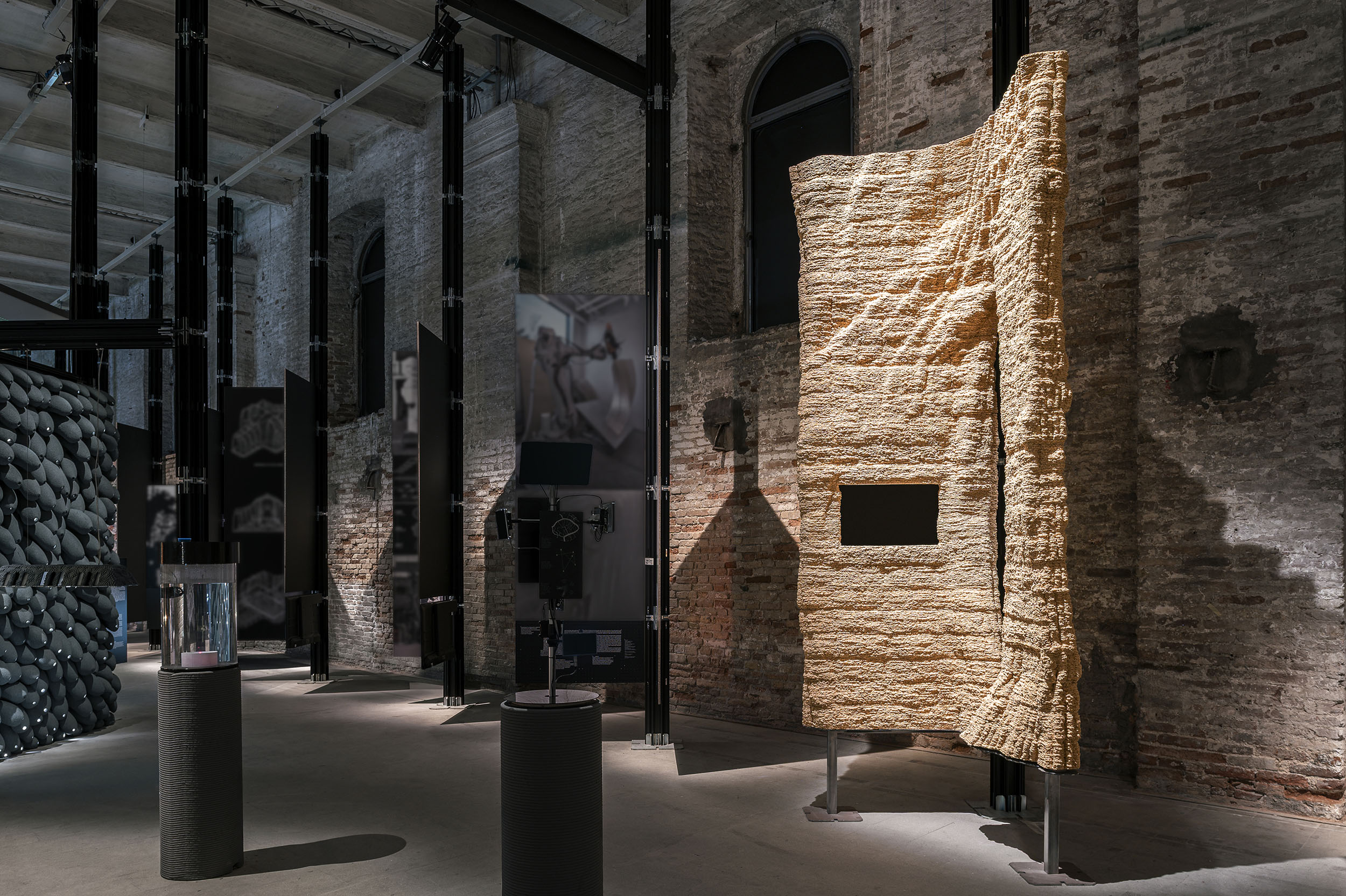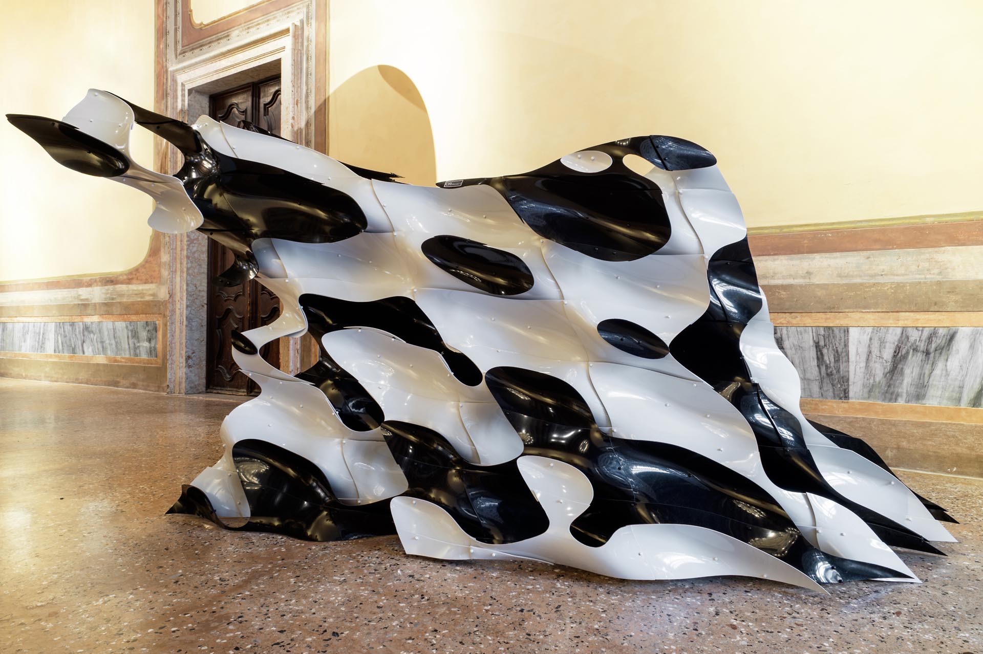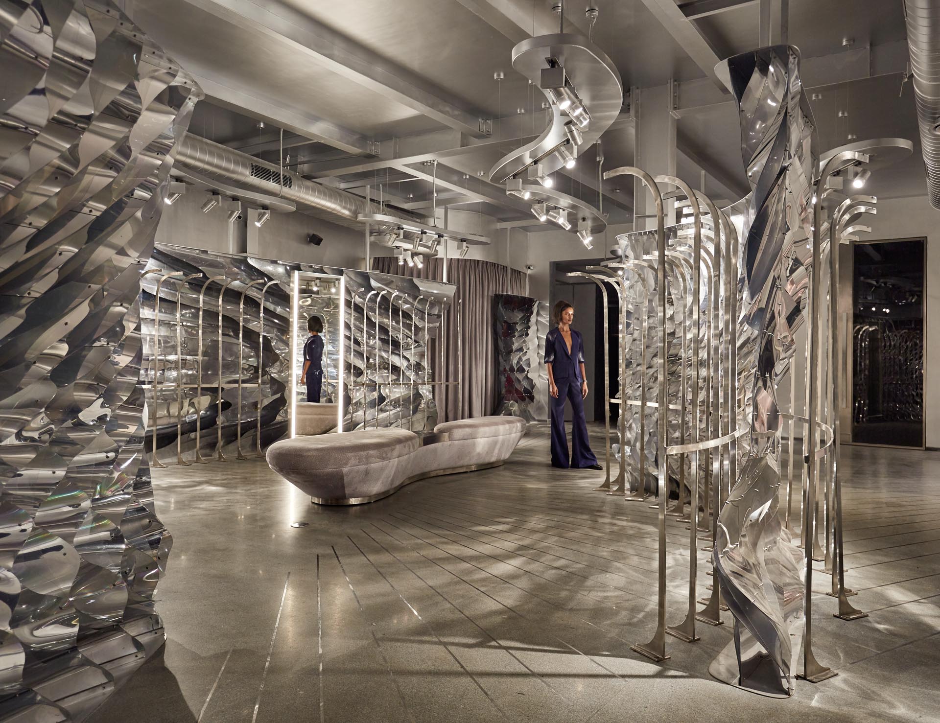 The positioning of the façade walls has been developed according to a custom written flow simulation. The algorithm describes a flow that is influenced and altered by a set of deflectors, which each act according to the magnitude of their attraction and the area of their influence.