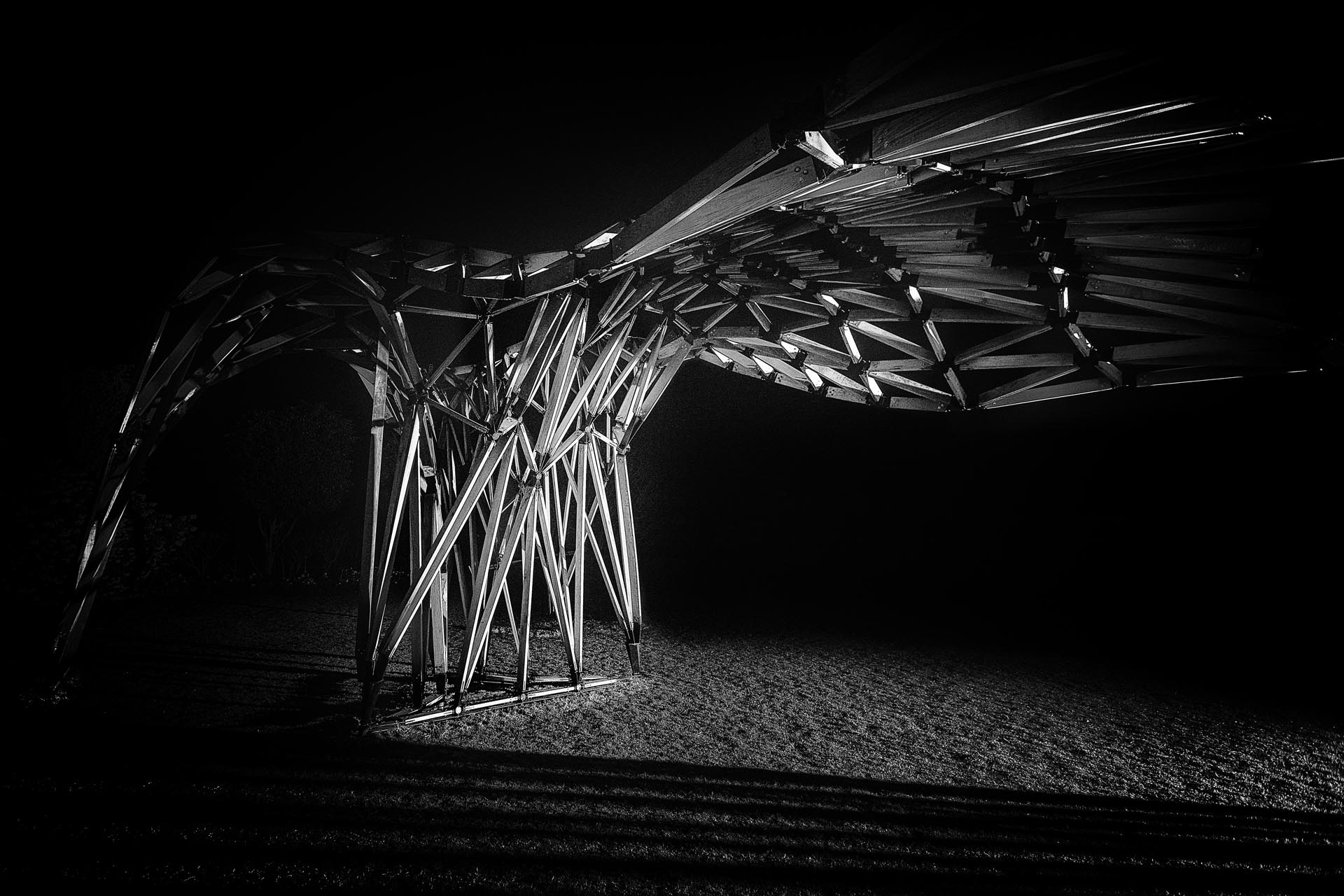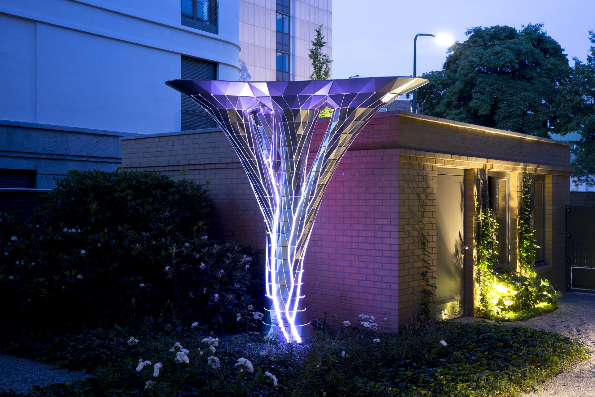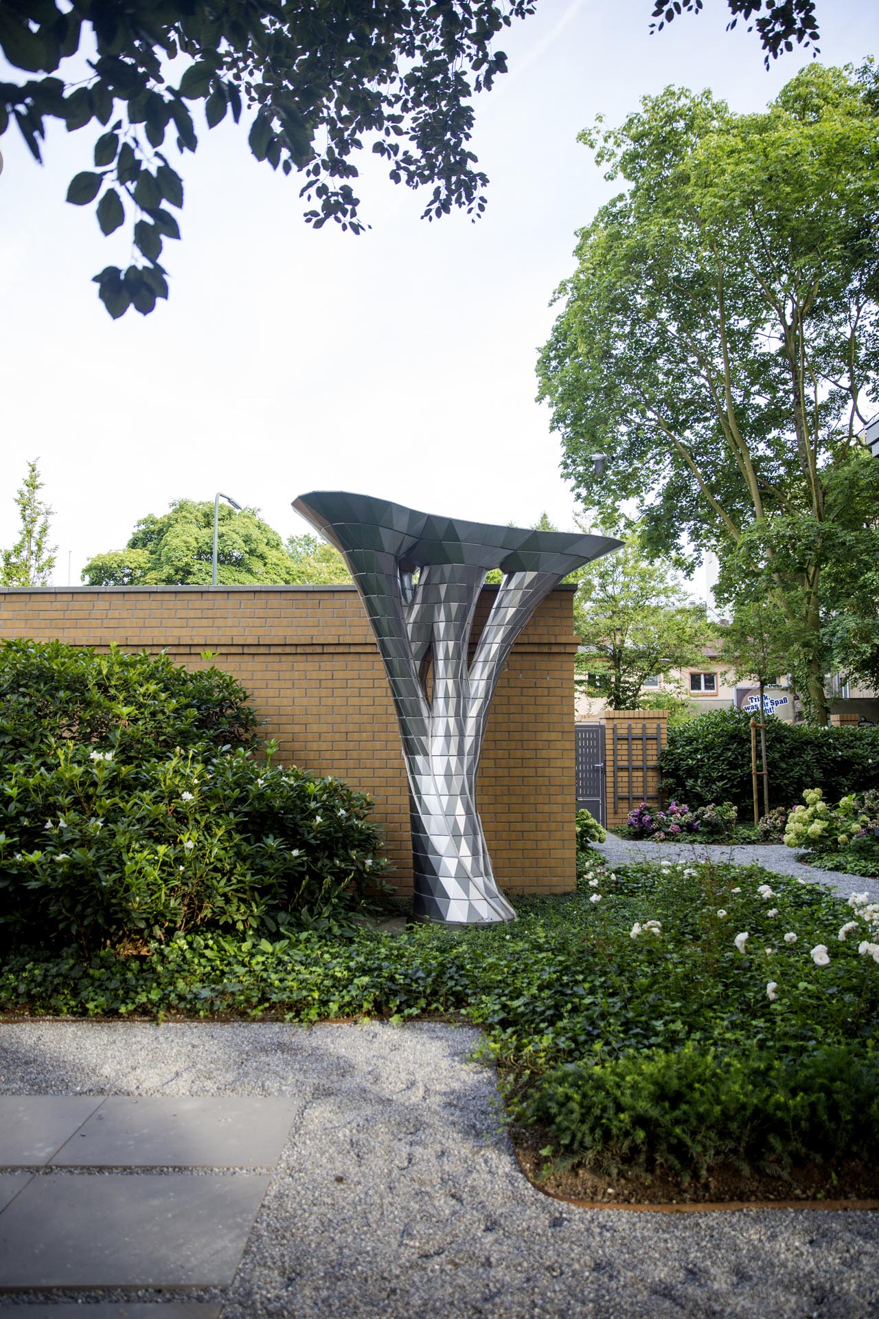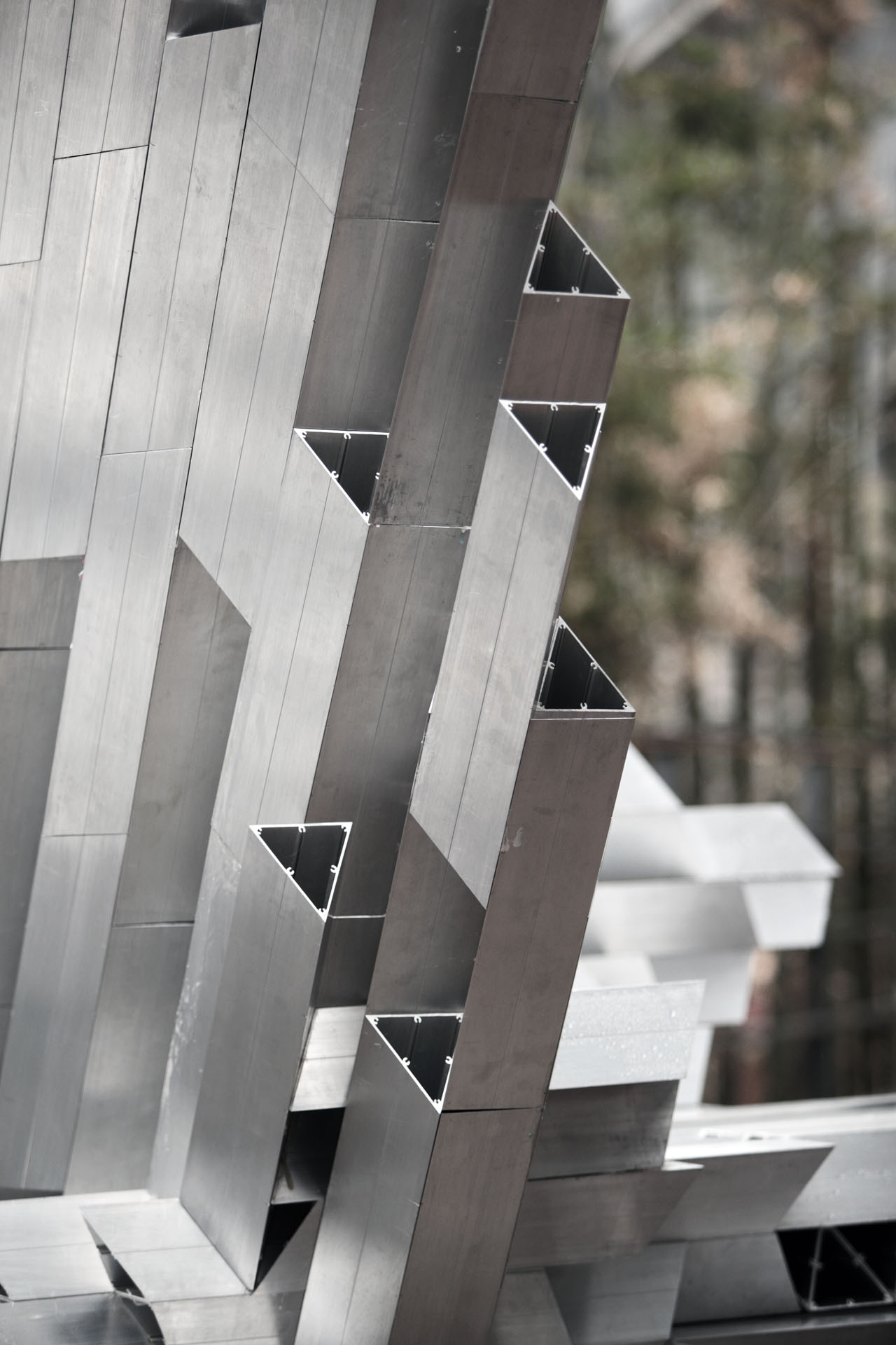 In the musical composition the different voices converge again. For the building, the separate façade layers spread out towards the city, form the structure for a bridge, and then slowly fade out and disappear back into the ground.